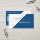 Cartões de visitas geométricos modernos, azuis e brancos, apresentam seu nome na frente em texto azul em texto branco e branco em azul. A parte traseira apresenta um código QR personalizável, o título do seu trabalho/especialidade/nome da empresa e informações de contato sobre um padrão invertido de blocos de cor azul e branca para a parte frontal. Personalize o código QR com seu portfólio ou link de site e adicione seu texto na barra lateral. Veja mais cartões de visitas personalizados na coleção Rocklawn Arts. Copyright ©Claire E. Skinner. Todos os direitos reservados.
