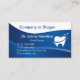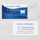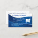 Cartões de visitas modernas e elegantes de lembrete de compromisso Dentista com o logotipo dos dentes, texto que você pode personalizar e duas placas design laterais, azul com fundo branco. Você pode usar facilmente como cartão de lembrete de negócios e compromisso em um só. Este cartão giro design para dentista, consultório dentário, consultório dentário, ortodontista ou cirurgião oral.