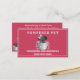 Um filhote muito popular em um design. Obtenha a atenção da sua empresa com este cartão de visita cor-de-rosa. A papoila tem um arco azul e bolhas no banho. Use o modelo fácil para personalizar todos os detalhes de sua empresa. Coloque-os no balcão e veja-os ir. A maneira mais econômica de comercializar sua empresa.Use o back para configurar a próxima data de compromisso.
