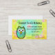 Este cartão de visita legal divertido é personalizável para atender às suas necessidades comerciais. Altere o texto, o design, cada elemento para atender às suas necessidades. Nesta design é uma design de coruja divertida que representa uma padaria, mas você pode mudar isso para qualquer coisa. O céu é o limite. Minha coruja de desenho animado é fabulosa como uma design cartão de visita que eu acho que se inclina mais para a população feminina, mas eu apoio os direitos dos gays então eu não estou listando como para uma mulher porque eu gosto de pensar que qualquer pessoa que se associe a qualquer gênero pode encontrar algo para amar sobre minha cartão de visita de coruja.