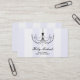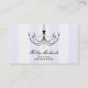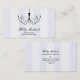 Um cartão de visita que caracteriza um illustrationof um candelabro de cristal que pendura da parte superior sobre um fundo da luz - listras verticais azuis. Personalize com seus nome e posição sobre a seção completa com guarnição preta no fundo. O lado oposto é visto horizonally e caracteriza o mesmo fundo que a parte dianteira. Personalize o texto na parte dianteira e na parte traseira com sua informações de contacto.