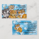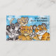 Estão aqui todos os quatro de meus desenhos animados do filhote do gato grande junto em um cartão de visita. Há um leopardo, leopardo de neve, tigre e leão! Estes desenhos animados, características de design da aguarela um teste padrão azul do catprint. Personalize a parte dianteira e a parte traseira com sua informações da empresa.