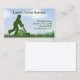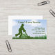 cartão de visita para o serviço de grama ou paisagem com o homem cortando grama verde com fundo azul.
