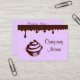 Este cartão de visita apresenta chocolate gotejado e cupcake de chocolate em fundo lilático. Personalize esta cartão de visita para atender às suas necessidades. Altere a cor de fundo, o texto, a fonte ou as informações comerciais. Use estes cartões de visitas de cupcake para uma padaria, boutique, negócios etc... Os designs são de ilustrações originais.