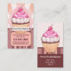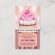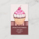 Cartão de visita com uma ilustração de um cupcake rosa doce no estilo retrô. A imagem do rótulo frontal está em um arquivo separado e pode ser excluída se você não precisar. Belo cartão de visita de bom-senso para uma padaria cupcake e doce. Você também pode personalizar esta cartão de visita para eventos para crianças que envolvam cupcakes.