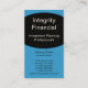 Curvas executivas profissionais cartão de visita em azul brilhante. Este cartão de visita elegante e limpo é uma escolha excelente para alguém interessado em fazer uma primeira impressão de excelente. Uma escolha perfeita para profissionais do setor financeiro, como planejadores de investimento, analistas, gestores de empréstimos ou agentes de seguros. Para tornar este design, adicione suas informações pessoais/comerciais aos campos fornecidos. As fontes e as cores do texto podem ser alteradas clicando no botão "Personalizar!".