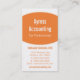 Cartão de visita em laranja, simples e elegante, com um design geométrico moderno em arco. Este sofisticado design de cartão de visita é perfeito para tipos profissionais de negócios, incluindo áreas financeiras como contabilidade. Fácil de personalizar, basta adicionar os detalhes de sua empresa nos campos fornecidos. Clique em "Personalizar" para encontrar opções adicionais de personalização.