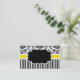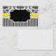 Apresentava de forma elegante um cartão de visita com fundo de damasco preto e branco com uma banda amarela. Um rótulo no centro está disponível para texto.