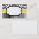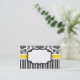 Apresentava de forma elegante um cartão de visita com fundo de damasco preto e branco com uma banda amarela. Um rótulo no centro está disponível para texto.