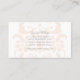 Simples com elegância profissional descreve este sofisticado Cartão de visita de Damasco Sutil com um fundo luminoso damask florescente. Essa tendência e a cartão de visita moderna são perfeitas para uma butique de grande escala ou um campo criativo, como o design de interiores, e podem ser facilmente personalizadas com seus detalhes comerciais. Para obter mais opções de personalização, clique no botão Personalizar Ti.