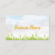 Um cartão de visita perfeito para aqueles amantes da natureza, com dentes de leão soprando pelo céu, colocados entre grama e árvores.