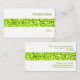 Modelo de cartão de negócios com um design moderno com estrelas espalhadas sobre um plano de fundo estilizado de "aparência sequencial" em tons de verde limão e texto verde sobre um fundo branco. Observe que esta é uma imagem de arte digital impressa, ela não brilha ou contém cinzas ou sequências reais.