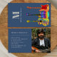 Cartão de visita de professor de guitarra com modelo de fotografia e tipografia moderna. Ilustrações coloridas de guitarra psicodélica sobre fundo azul, completas com monograma personalizado, nome, detalhes e modelo de foto. O perfeito design de cartão de visita para guitarristas, músicos profissionais, artistas, compositores, compositores e professores de música. Arte original da artista Catherine Sweetman
