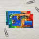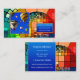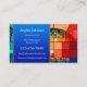 Um modelo de cartão de negócios moderno com sua própria foto enquadrado por um design geométrico colorido. Personalizável para qualquer profissão.