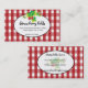 Cartão de visita Primitivo de Gingham Vermelho e Branco - Estilo de Etiqueta de Fábrica com Morangos Duas Cartões de visitas Sidirecionais.