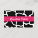 Um impressão de girafa preto e branco, arrojado, com sotaque rosa brilhante, decora este cartão de visita personalizado. Personalize esta cartão de visita para atender às suas necessidades. O design é de arte original. Use este cartão de visita para uma butique, padaria, moda, alterações, decoração, joalharia, acessórios, maquiador, planejador de eventos, salão de unhas, salão de cabelo, estilista de cabelos, imóveis, design de interiores, salão, spa, cosmetólogo, etc..