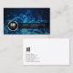 Este cartão de visita pianista de temática escura apresenta um ícone cromo de uma chave de piano incluída em um círculo cromático sobre um fundo escuro de notas de música embaralhadas. O nome da sua empresa e o texto/slogan aparecem dentro de uma faixa do painel de texto preto que é executada a partir do ícone da esquerda em direção à borda direita da placa. O fundo do cartão consiste num padrão de tons escuros granulados. Seus detalhes de contato aparecem na parte inferior esquerda na parte traseira da placa. Perfeito para música, músico, entretenimento, show business, artes, artística, profissional, impacto, temas escuros.