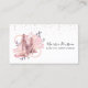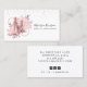 Um cartão de visita de instrutor de dança elegante com calçados, rosas e pérolas cor-de-rosa dançando, com uma dispersão de brilho rosa.