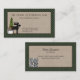 Cartão de visita de lodo de cabra da Rússia com um cesto recheado de pínus e bagas, alce e pinheiro. A borda da cartão de visita é xadrez verde. Cartão de visita faz parte de uma coleção. Perfeito para a sua pequena empresa.