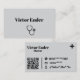 Apresente a sua profissão de médico com estilo utilizando este cartão de visita profissional e elegante. O design apresenta uma cinza limpa com tipografia negra ousada para o nome Victor Ender e o título Doutor. Um ícone de cruz médica preta minimalista é colocado no canto superior direito, enquanto o lado esquerdo inclui um código QR digitalizável para acesso rápido às informações de contato ou perfil.