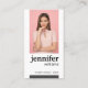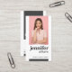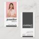 Um cartão de visita vertical moderno para modelos e atrizes. Este modelo de design de cartão de visita mostra sua foto e seu nome na frente. Todas as informações de contato, incluindo o identificador de mídia social, podem ser encontradas na parte traseira deste design de lado duplo.