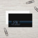 Este cartão de visita de diretor de filme apresenta um fundo preto a jato com as letras monográficas que aparecem no lado inferior esquerdo da placa. As letras do monograma são faixas azuis gradativas que se estendem até as bordas do cartão. Abaixo das letras do monograma aparece seu nome e abaixo dele, seu título. Projetado para temas elegantes, quicos, abstrato, modernos, mínimos, fotografia, imagens, filmes, vídeos, artísticos, artes.