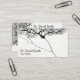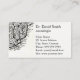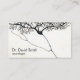 Um cartão de visita preto e branco com um desenho detalhado e intrincado de um neurônio, recomendado para um neurologista ou neurocirurgião.