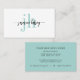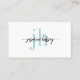 Em direção a um estilo simples com recurso de designer, este cartão de visita moderno design apresenta seu nome escrito em um script de caligrafia manuscrito com caudas à esquerda e à direita para adicionar uma aparência de na moda. Sua primeira e última iniciais são apresentadas em uma face industrial moderna do tipo serif em aqua teal sob a caligrafia. O resultado é totalmente você! O modelo de texto na parte traseira da placa tem espaço para todas as informações que você normalmente compartilharia na sua placa. Você pode adicionar ou remover qualquer um deste texto conforme desejar. NOTA: ao personalizar seu nome na frente do cartão, deixe os símbolos de caixa antes e depois do seu nome. Isto é o que faz com que as bonitas caudas fiquem impressão antes e depois do seu nome.