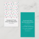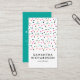 Um cartão de visita vertical divertido, colorido, mas profissional, que apresenta um padrão de triângulos dispersos, com espaço em branco no terço inferior da placa fornecendo detalhes de nome e serviço. O verso tem um fundo especial divertido, com detalhes de negócios e contatos em fontes brancas modernas. Este design é excelente para planejadores de eventos e qualquer outro profissional.