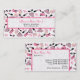 Um cartão de visita com um design de óculos escuros retrorados de gato rosa e preto, bolsas cor-de-rosa com bolinhas de cinza, bolsas de embreagem cor-de-rosa com arco preto, batom rosa, gemstones cor-de-rosa e frasco de perfume com atomizador rosa. Personalize o texto na frente e atrás com suas informações.