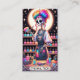 Um cartão de visita exclusivo de especialista em unhas em negrito com estilo de placa de tarot de tecnologia unha. Um mashup de estilo único do tarô e da sua ocupação. Redes sociais nas costas.
