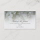 Um cartão de visita de planejador de casamento com uma foto próxima em frente e atrás de híbridos brancos. Personalize com suas informações na frente.