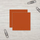 Cartões de visitas quadrados de cor média e sólida "Rust". A ferrugem é uma laranja forte; uma sombra escura média de laranja vermelho. Clique em "Personalizar" para mudar de cor ou para adicionar texto ou design. Código hexadecimal do produto: #b7410e