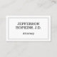 Este design cartão de visita profissional, limpo e básico apresenta um fundo branco e uma borda dupla com uma linha tracejada no meio. Pode ser usado por um profissional como advogado, advogado, advogado ou notário público. O nome, profissão e contatos podem ser personalizados.
