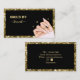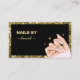 Nail Salon Black e gold glitter com uma mão mulher com Unhas elegantes de caligrafia por Unhas Salon. Cartões de visitas de zazzle modernas e manicura.
