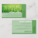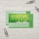O Cartão de visita de Serviços de Jardim e Paisagismo tem uma nova vibração verde como a grama na foto com um verde-claro complementar para os detalhes. Tem uma simples tipografia verde dos serviços, localização, contatos e profissão, enquanto apenas o nome comercial em branco para enfatizar.
