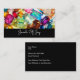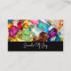 Cartões de visitas de temas de joias desenhadas com uma imagem de fundo artística de um padrão colorido de joias gemstone e o nome de sua empresa, em caracteres clássicos na frente. Personalize o design on-line que exibe as informações de contato no lado do sacudir para que você possa promover o nome de sua empresa ou o site na frente.