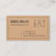Um cartão de visita com contornos de ferramentas comuns de mão, que incluem chave de fenda, cortador de fios e cortador de pano na esquina. Um fundo de textura. Perfeito para quem presta serviços de mão de obra. Personalize com suas informações comerciais nos modelos de texto fornecidos.