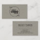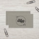 Cartão de visita de fonte de script preto elegante e clássico com logotipo personalizável na frente. Textura sutil e minimalista do tecido falso na frente e atrás, textura de roupa de cinza.