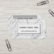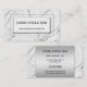 Cartão de visita com design de mármore preto e branco com forro prateado e campos de texto. Um cartão de visita elegante para uma funerária, funerária ou cemitério. Personalizável para outras situações.