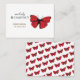 Desenho de Borboleta Vermelha, cor de fundo personalizada e cartão profissional com texto.
