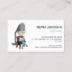Cartão de visita simples e fofo de cabelos estilista com uma ilustração cartoon de um cliente no cabeleireiro ou salão de beleza. Ilustrada e projetada por Patricia Alvarez.