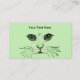 Esta cartão de visita é verde-claro com um esboço preto da face de um gato com bigodes longos e olhos amarelos verdes. Personalize suas informações na frente e atrás com os modelos.