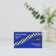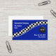 Refrigere cartões de visitas automotrizes do tema com competência de teste padrão checkered dos quadrados da bandeira que funciona através dele em um gráfico azul do fundo. Criado para a indústria de automóvel que inclui mas não limitado a uma oficina de reparações, a um mecânico, equipe de competência, ou detalhe do carro.
