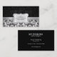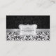 Cartões de visitas personalizados simples e elegantes para designer de interiores. Damasco preto e branco com acentos de prata metálicos. Bonito e simples.