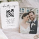 Este elegante design de casamento apresenta um layout limpo em preto e branco com simplicidade moderna e estilo romântico suave. O título com letra manuscrita combinado com um código QR em negrito cria uma aparência sofisticada e contemporânea que se sente ao mesmo tempo elegante e prática. Com sua tipografia discreta, cantos arredondados e espaçamento arejado, agrada aos casais que planejam uma celebração chic e minimalista. A estética refinada funciona lindamente para casamentos modernos, eventos formais e conjuntos de papelaria de noiva atemporais.