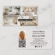 Cartão de visita de design interior com uma grade de fotos com fotos e logotipo personalizados na frente. No verso está sua própria foto retrato, assim como um código QR e informações de mídia social. As cores de fundo e o fundo (tamanhos) do texto podem ser alterados no editor avançado. Os ícones das mídias sociais podem ser substituídos ou excluídos de acordo com as suas necessidades. Este cartão de visita é excelente de mostrar a seus clientes parte do seu trabalho.