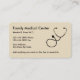 Design simples do modelo de cartão de negócios do médico de família com imagem de um estetoscópio no fundo incorporado no design e na disposição simples você pode personalizar sua maneira em nossa ferramenta de design em linha. Projetado para uma prática da família, a clínica de saúde, ou o representante do seguro de saúde na indústria médica e incluem o modelo da nomeação no outro lado que você pode se usar ou remover. Apresentado no estoque de papel do cartão de visita do canto arredondado.