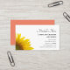 Cartão de visita botânico, com design de girassol amarelo e tipografia negra elegante. Com texto personalizável, você pode adicionar suas próprias informações. A parte de trás tem uma cor de pêssego para adicionar contraste à parte frontal. Excelente para adicionar um toque floral ao seu negócio de designer paisagístico.