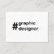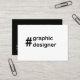 Cartão de visita do Designer Gráfico projetado por Nisha Prabhu. Totalmente personalizável. Personalize com seus detalhes. O Cartão de visita do Designer Gráfico é uma representação profissional e visualmente impressionante de suas habilidades de design e sua expertise. Feito com muita atenção aos detalhes, essa cartão de visita é projetada para deixar uma impressão duradoura sobre clientes potenciais e colaboradores. A frente do cartão de visita apresenta um design de tipografia personalizada, elegante e moderno, preto e branco, que mostra ''#designer gráfico'' de forma ousada e atraente para os olhos. A parte traseira do cartão de visita oferece amplo espaço para mostrar suas informações de contato. Com sua design elegante e atenção aos detalhes, o Cartão de visita do Designer Gráfico é uma ferramenta poderosa que ajuda você a fazer uma primeira impressão memorável. Entregue este cartão em eventos de rede, reuniões de clientes ou sempre que quiser mostrar seu profissionalismo e criatividade como designer gráfico.